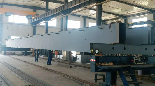 ○ 即在預組裝專用橋架上進行預拼裝,并用激光測距儀、水準儀、全站儀等光學測量儀檢測,確保主梁拱度、旁彎,以 及車輪定位、對角線等正確的跨距和定位;